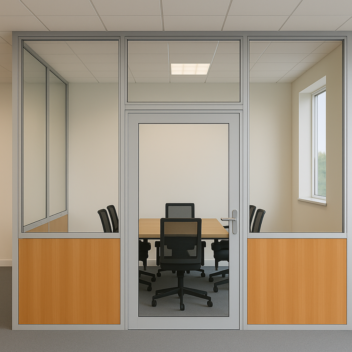 División de Oficina en Vidrio y Madera